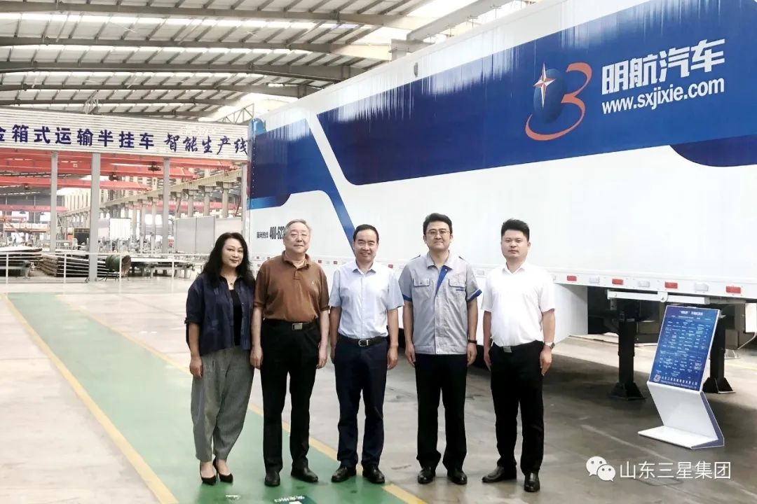 9月15日,中国物流与采购联合会会长助理、物流装备专业委员会主任马增荣,山东省物流与采购协会秘书长盛丽丽一行就物流产业装备应用及新技术开发事宜来山东三星集团机械公司明航汽车生产基地参观调研。机械公司总经理张恒、大客户业务经理张迪接待调研领导一行。